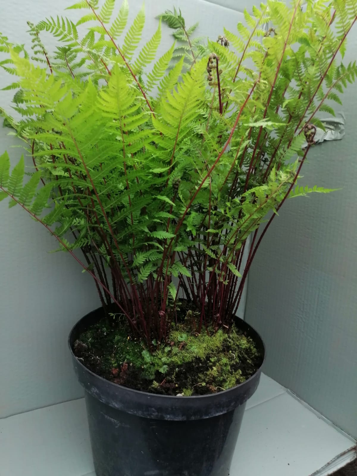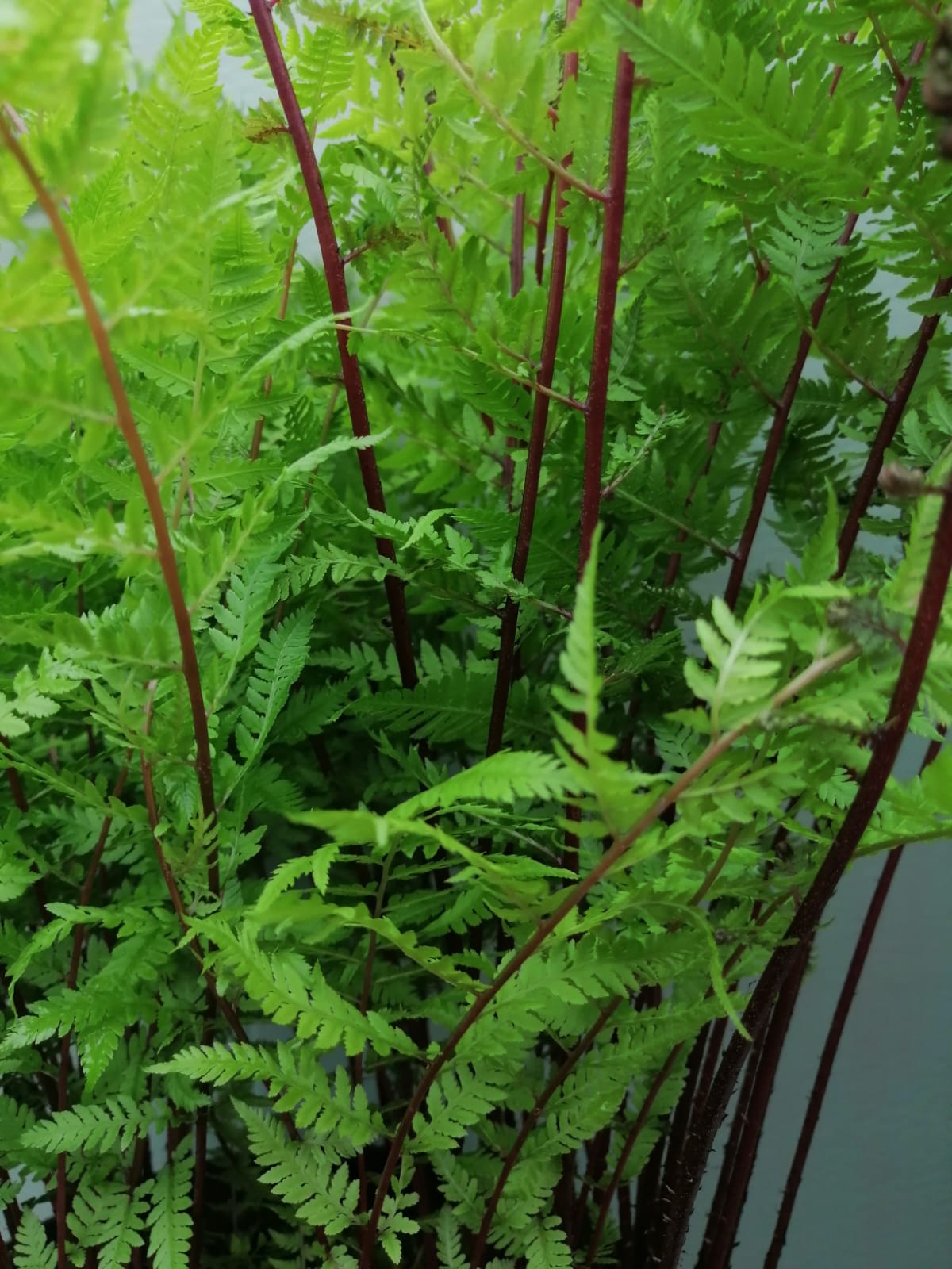 A graceful hardy deciduous fern with light feathery green fronds and  stricking bright red stems particularly so when emerging in the spring though they still provide a vivid splash of colour throughout the summer. They prefer a damp sheltered position and do not like to dry out, ideal in borders or containers.