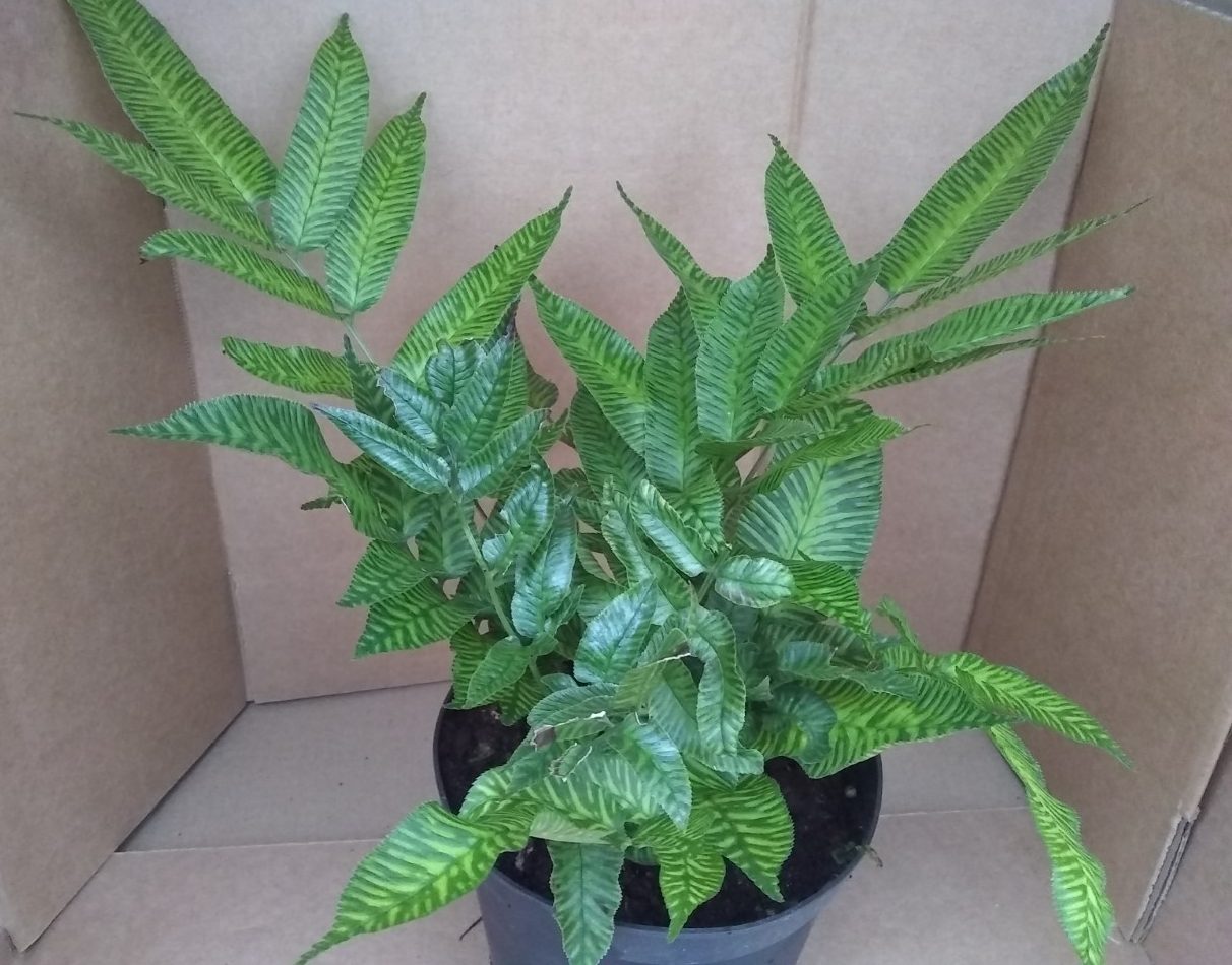 An exotic looking evergreen fern with a slow spreading clump forming habit, they produce new lance shaped fronds that form in late April that are dark green striped with yellow, they prefer part to full shade and a sheltered position, they may need protection from hard winters and slugs when young, they are ideal for borders, rockeries or containers.