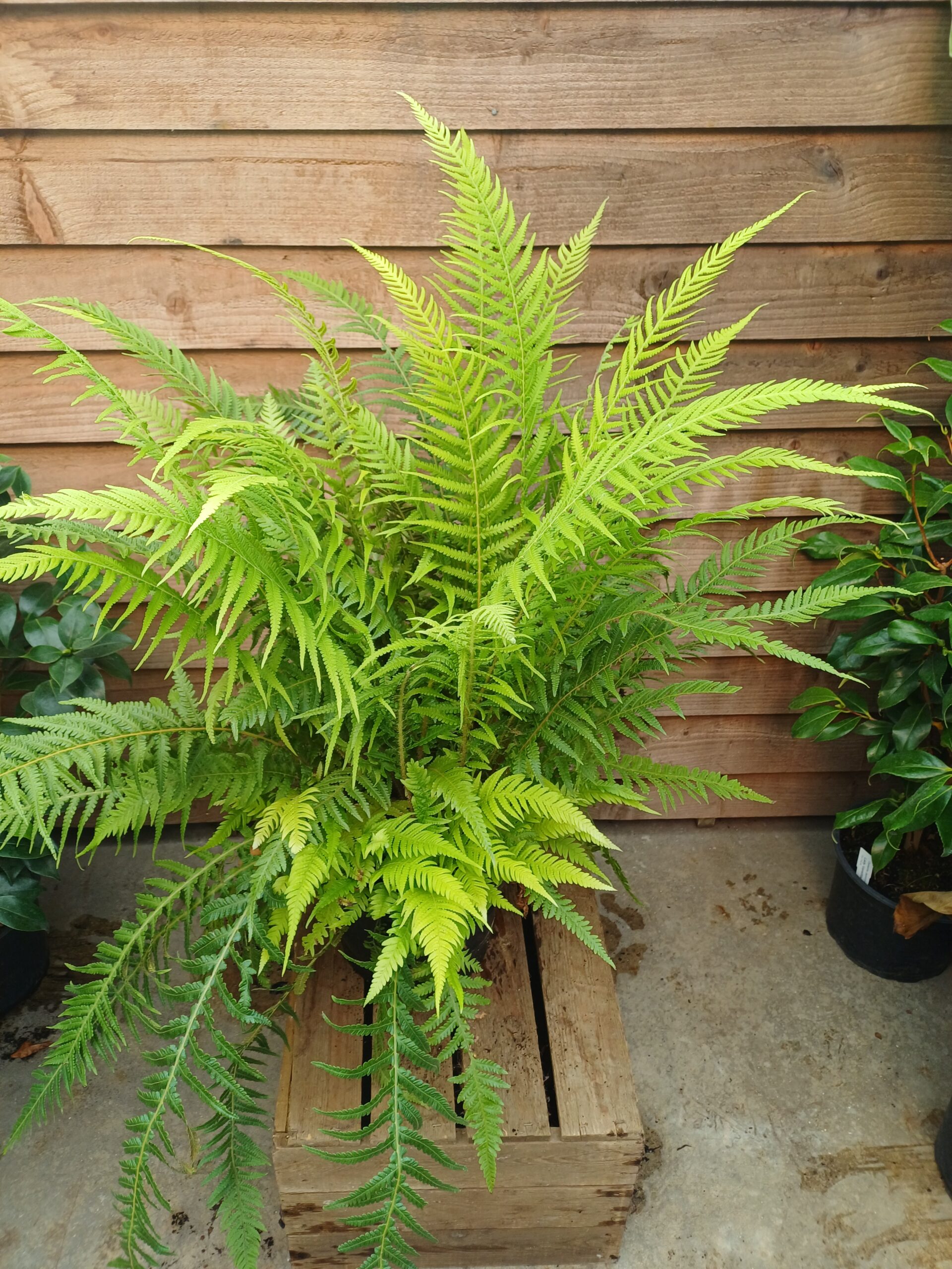 This is a tough hardy deciduous fern that has elegant upright lime green fronds, it has a slow spreading habit and prefers a damp shady position, though is tolerant, when established of dry periods and moderate sun. It is ideal for borders, containers and woodland settings.